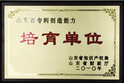 2010年4月22日,我公司被評審為“2010年度山東省專利創造能力培育單位”,該獎項由省財政廳、省科技廳、省教育廳、省國資委、省科學院、省知識產權局、省專利技術保護鑒定中心等單位(部門)共同評審確定,每年度全省評出15家單位進行重點培育。根據相關規定,我公司正式掛牌進入三年培育期,培育期內將獲得省知識產權局給予的10萬元專項資金支持。